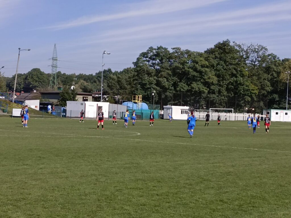 mierzyliśmy się z UKS AP Żory, od początku było widać, że mecz będzie bardzo wyrównany i każdy detal może zdecydować o zwycięstwie. W 25 minucie tracimy bramkę przez niedopilnowanie zawodniczki w środku pola, a mimo stwarzanych przez nas sytuacji nie udaje się nam zdobyć bramki. Drugą część spotkania zaczynamy tracąc bramkę w pierwszej akcji zespołu gospodarzy, ale mimo to nadal walczymy o każdą piłkę to jednak nie przynosi efektu i tracimy trzecią bramkę w tym spotkaniu. Nasze dziewczyny łatwo się nie poddają i walczą jeszcze bardziej stwarzając o wiele więcej sytuacji niż w pierwszej połowie co się opłaciło, Ewa wypracowała świetną sytuację mijając przeciwniczki i posyłając piłkę w kierunku bramki gdzie znajdowała się Kinga zdobywając dla nas pierwszą bramkę ![]()